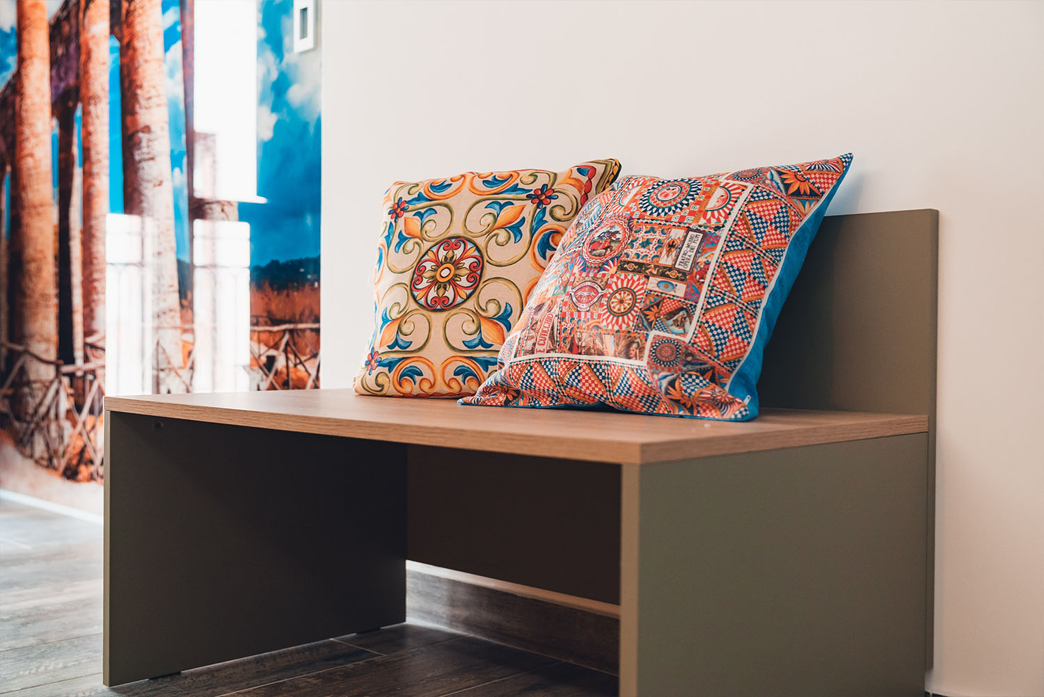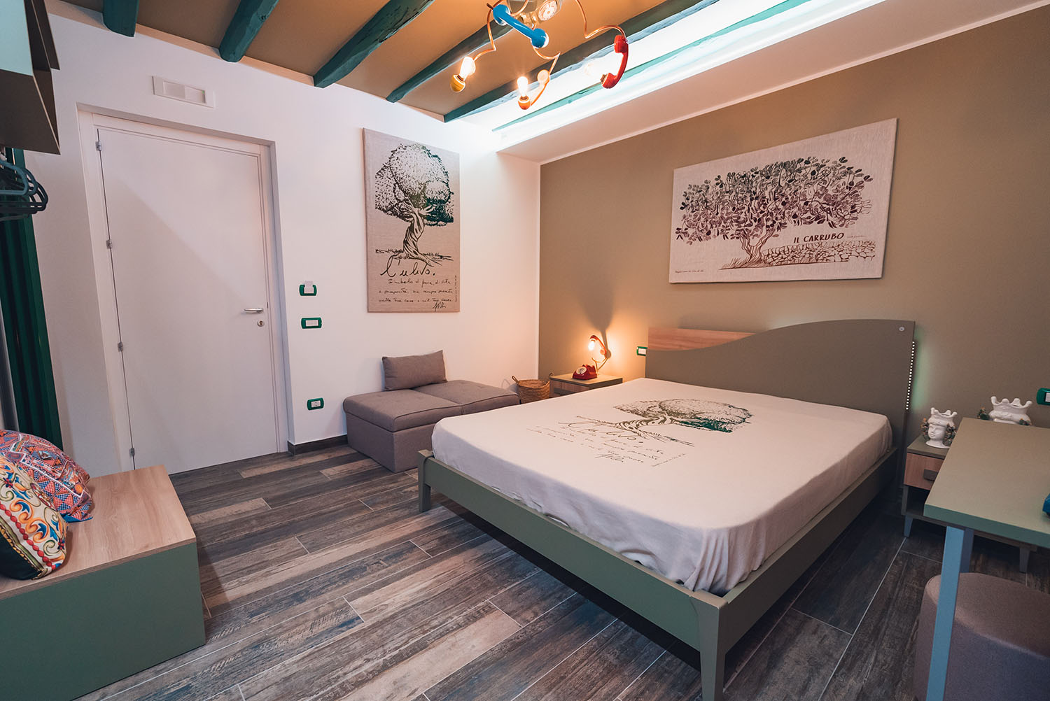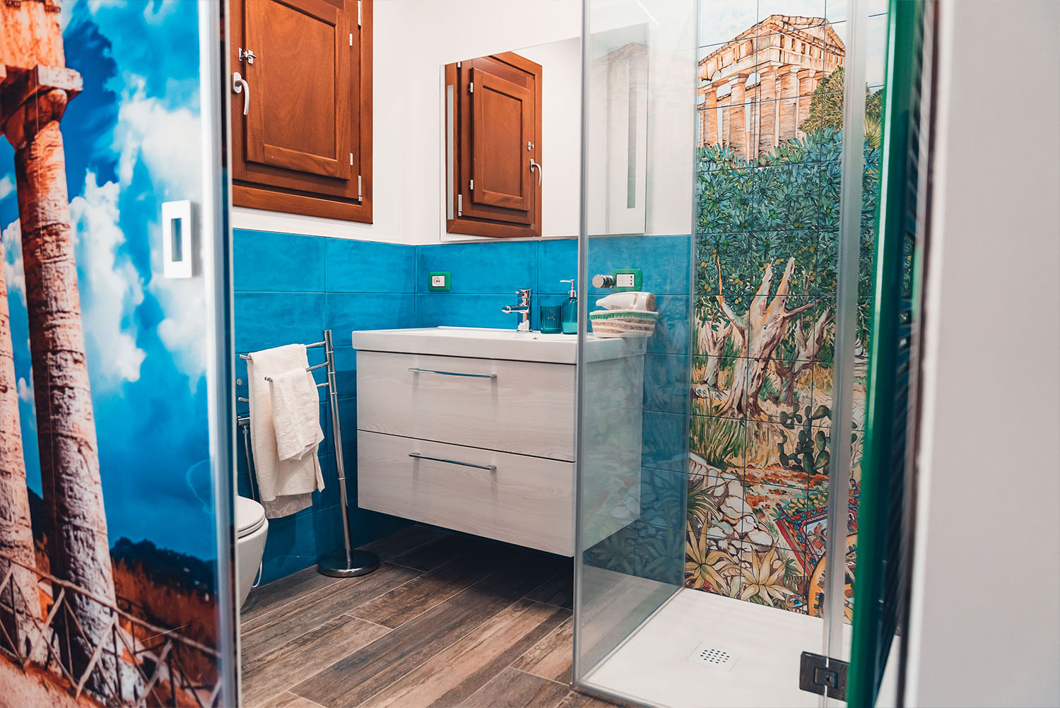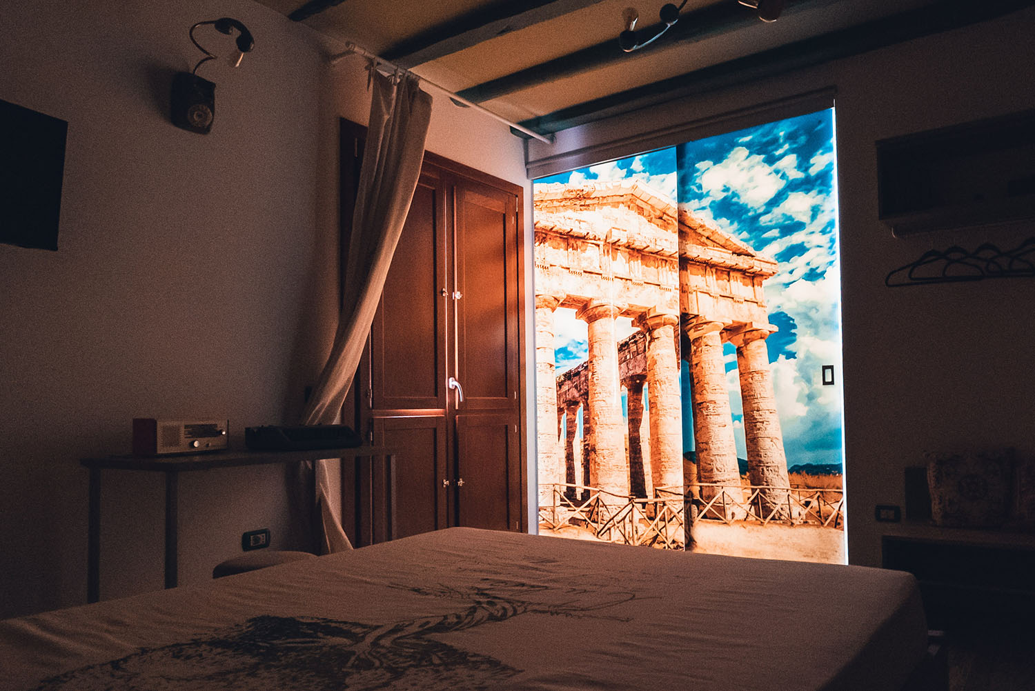 Riprende il tempio di Segesta e i suoi ulivi, i suoi colori sono impressi nei muri e negli arredi di designer locali; all’interno della stanza un gioco di luci farà rivivere uno dei templi più famosi al mondo.